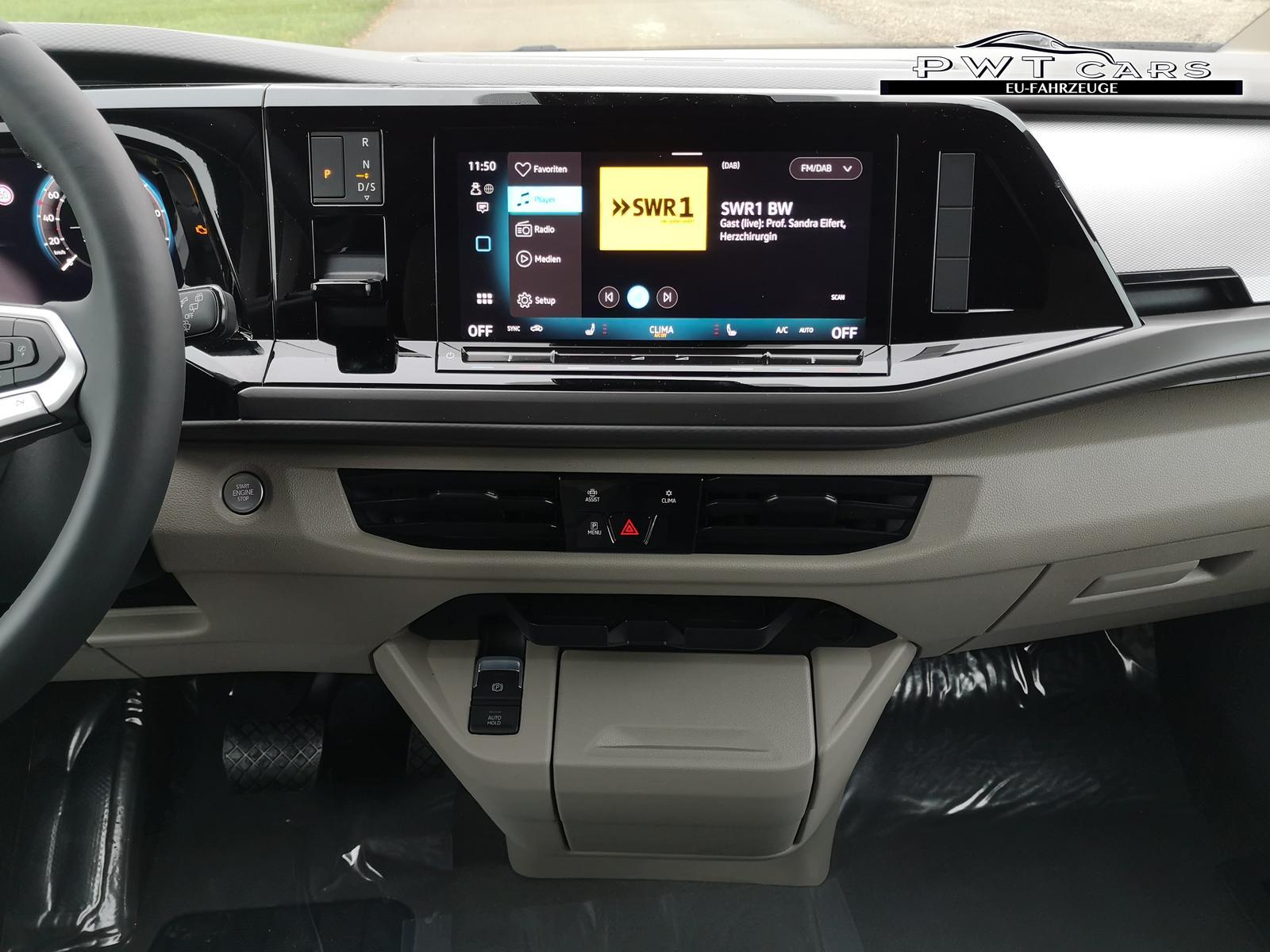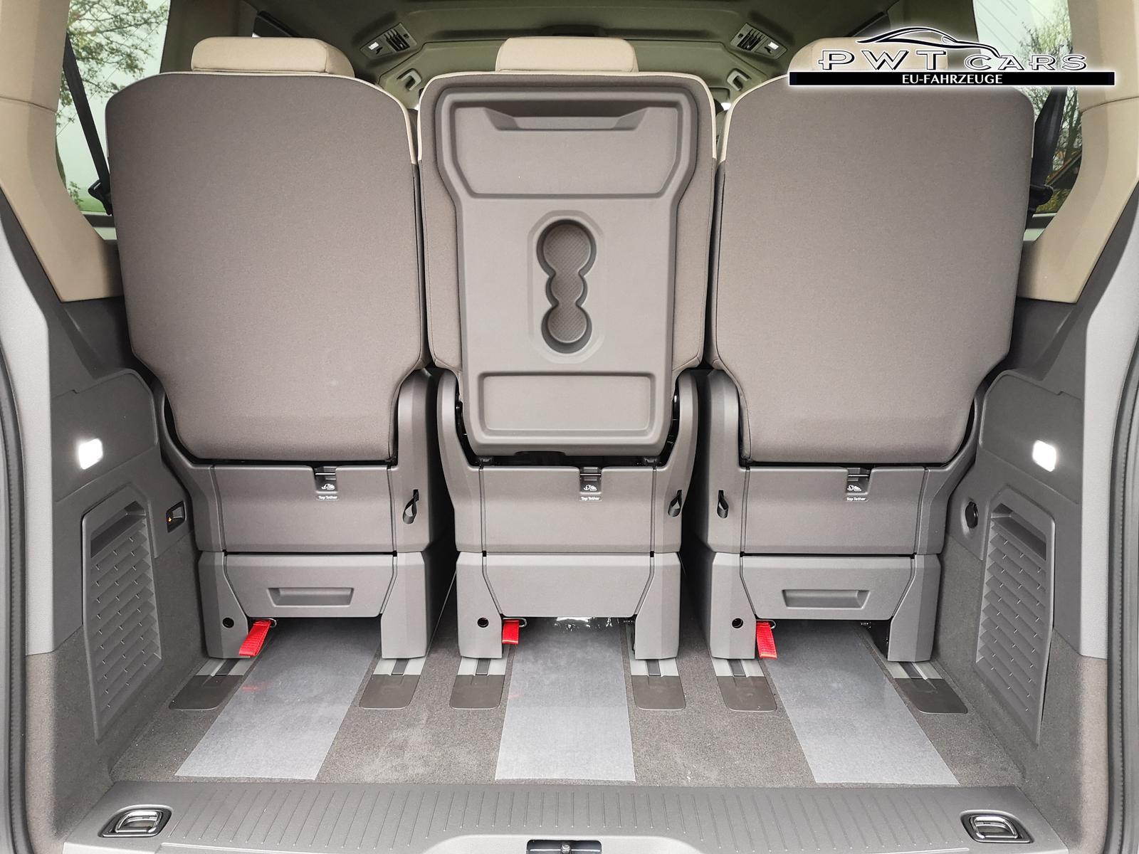 (4A3) Sitzheizung vorne, (76C) Ladekabel für Wechselstrom-Ladestation (Mode 3), (3U3) Gepäckraumabdeckung, Belastbarkeit 20 kg inkl. Taschenhaken und Gepäcknet, (4S1) Sitz Fahrer/Beifahrer mit Armlehnen beidseitig inkl. elektrischer Lendenwirbelstütze und Klapptisch auf der Sitzrückseite, (0NP) Bulliplakette am Kotflügel, (U9E) USB Schnistellen 2x vorne und 4x hinten, (Z2Q) Anhängerrangierassistent ""Trailer Assistent"" inkl. Anhängerkupplung schwenkbar, Parklenkassistent inkl. Rückfahrkamera, (Z3A) Family-Paket: Schubladen unter den Sitzen im Fahrgastraum und 2 Abfallbehälter, Multifunktionstisch/Mittelkonsole, Schiebefenster sowie Zuziehhilfe in der Schiebetüre links und rechts, (7UY) Radio Navigationssystem Discover Pro, (4GX) Frontscheibe beheizbar und geräuschdämmend, (9IJ) Mobiltelefonschnittstelle Comfort mit induktiver Ladefunktion, (ZEB) Heckklappe elektrisch öffnend und schließend, (6I6) Travelassistent, (ZBR) 7 Sitzer: Sitzvariante 2-2-3 (Vis-a-Vis entgegen der Fahrrichtung) inkl. 4 Armlehnen.