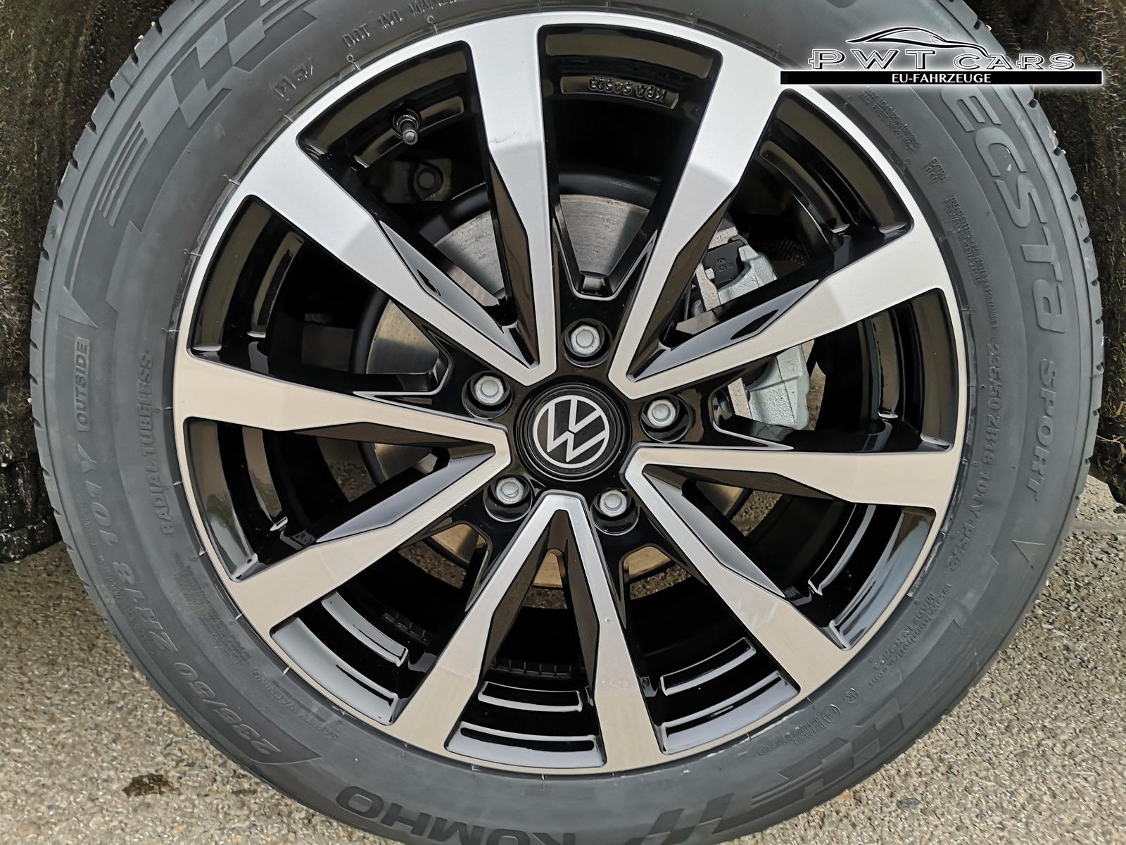 Highlights: Sport Edition Paket: Sport Edition Schriftzug an Fahrzeugseite, Fahrzeugheck und im Fahrzeuginnenraum, Fahrzeug 8-fach-bereift, Leichtmetallräder 7,5J x 18 (Sport Edition Design TN28, schwarz glanzgedreht) mit Sommerreifen 235 50 R18, Alufelgen 7Jx17 ""Dundrod"" schwarz mit Winterreifen (M+S Kennung inkl. Schneeflocke / Allwetterreifen), 3-Zonen Klimaanlage ""Air Care Climatronic"" mit Bedienteil im Fahrgastraum, IQ.Light - LED-Matrix-Scheinwerfer mit LED-Tagfahrlicht, Fenster ab B-Säule abgedunkelt, Spurhalteassistent ""Lane Assist"", Spurwechselassistent ""Side Assist"" inkl. ""Blind Spot Detection"" (Totwinkelerkennung im Spiegel), Standklima/Heizung: Steuerung im Infotainment-System und über die Volkswagen App (Vertrag von VW Connect Plus erforderlich). Bei gestecktem Ladestecker wird das Fahrzeug etwa 30 Minuten lang klimatisiert bzw. geheizt, bei nicht gestecktem Ladestecker verkürzt sich die Laufzeit der Klimatisierung auf etwa 10 Minuten, Werksanschlussgarantie auf 5 Jahre / max. 100.000 km,
